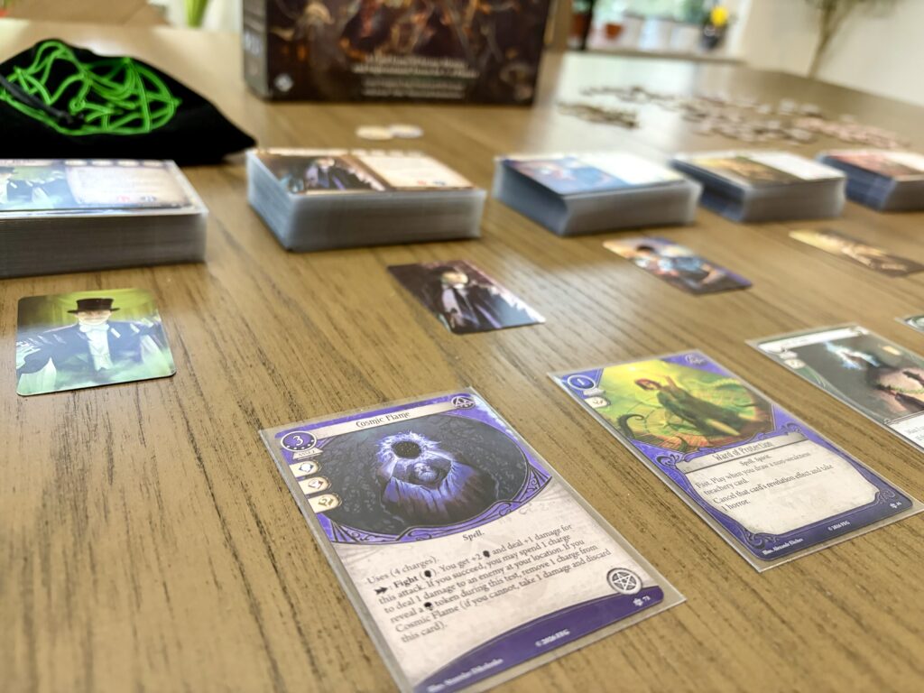 That’s why I think this content will appeal more broadly to Arkham Horror LCG newcomers. There are some noticeable quality-of-life upgrades such as including a bag for the chaos tokens, card dividers, connector tokens to make it easier to tell which locations are connected, and an improved rulebook that includes prebuilt starter decks for each of the five new investigators along with strategy and upgrade suggestions. One slight negative is that the insert is a touch small for sleeved cards (I used Dragon Shield standard sleeves). Also, while I appreciated the new flashlight tokens that can be used in the place of the mini-investigator cards, I can’t help but feel like they missed an opportunity to put the investigator character art on them as a best-of-both-worlds solution. All that said, the overall production value is a significant step up from the original core box.