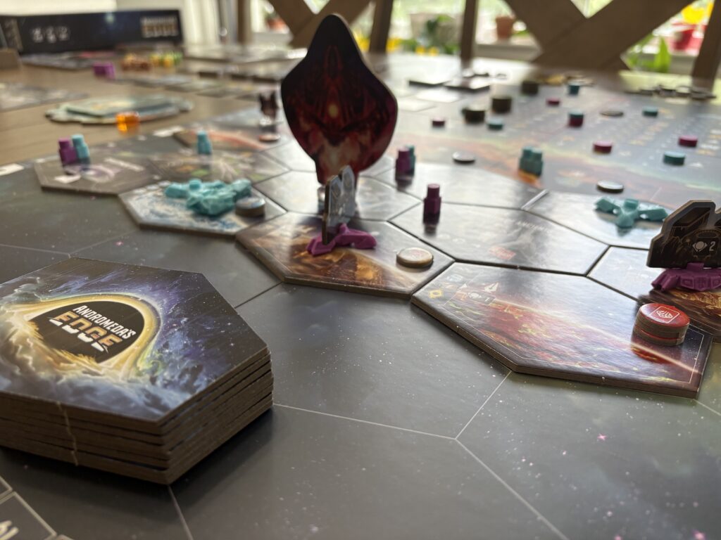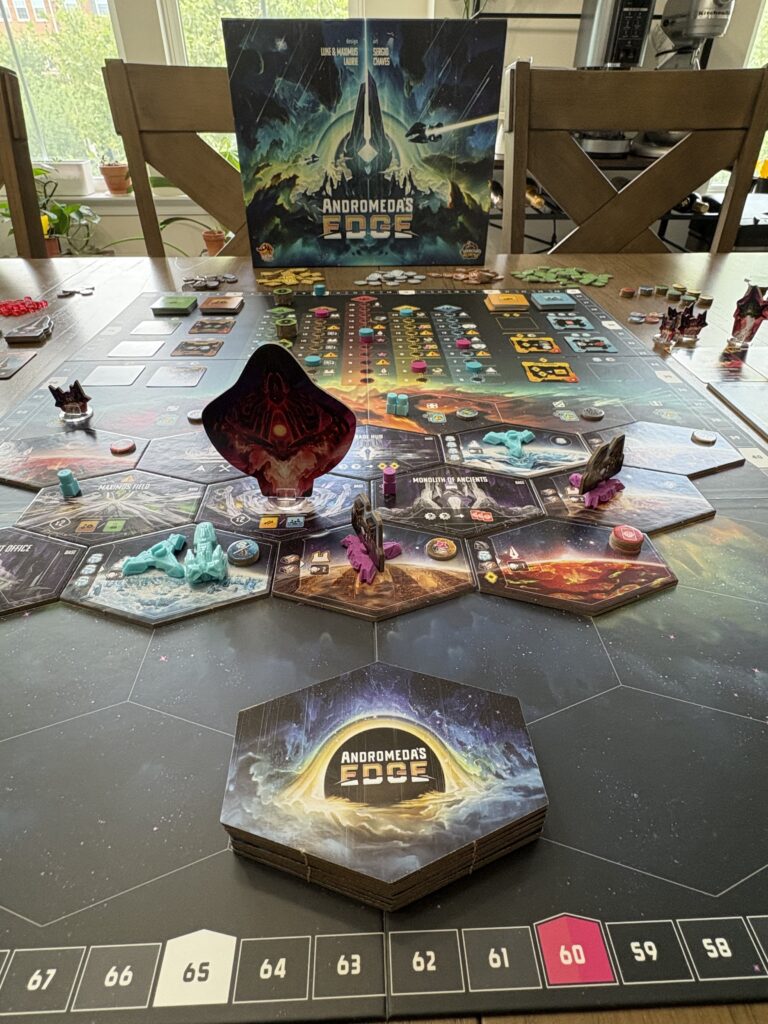 I had the opportunity to play a short, three-turn demo of Andromeda’s Edge at PAX Unplugged last year, and while I left that demo with a lot of unanswered questions about the game, there were enough fascinating mechanisms that made me want to try the full, complete version.