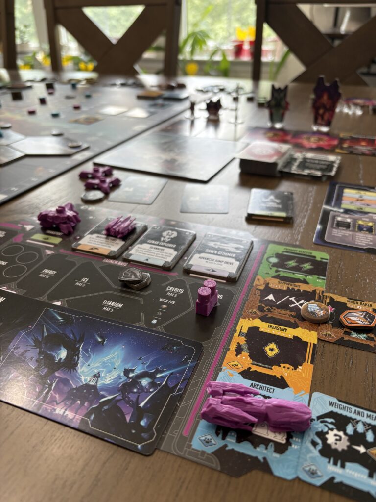Another issue I have with the game is that some turns can feel quite ordinary compared to others. For example, one turn I could visit a planet and take a moon token and that be it. Whereas, on another turn, I could take an Alliance region action to acquire two new modules, trigger a raider strike, have another player join the combat, and then even have an event happen at the end of the turn. This can lead to some quite drawn out turns, which can lead to significant downtime between players. Especially later in the game, recall turns can take a while when you have a large tableau of modules. This issue could be somewhat mitigated by being able to start the next player’s turn while the previous player is finishing their current turn, but I found that often what you’re doing on your turn can directly impact the next player (for example, selecting a new module to acquire or using a module that also gives all other players resources).