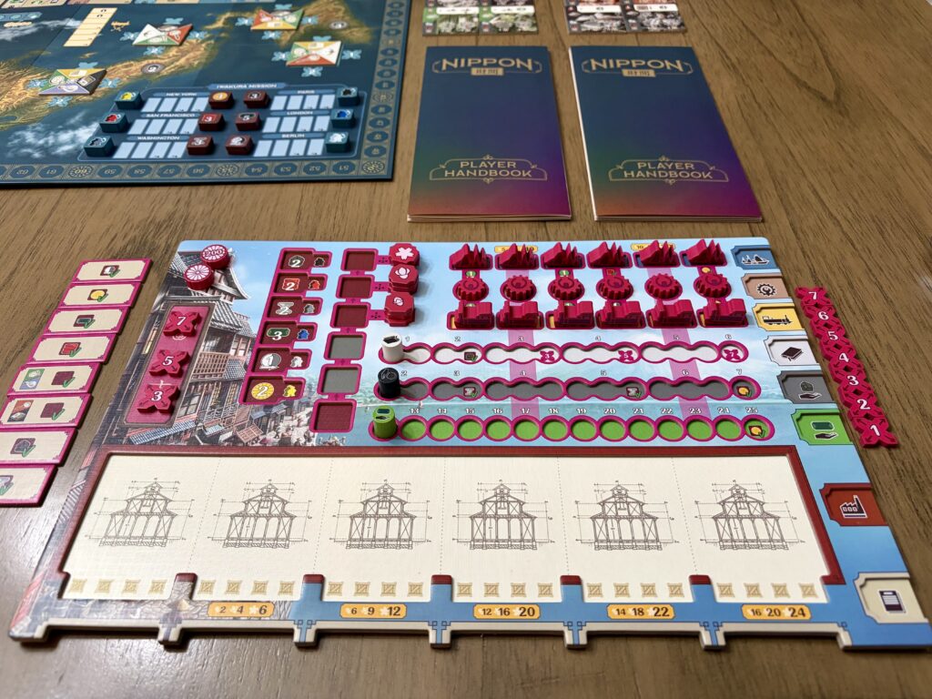 Nippon: Zaibatsu is the latest edition of Nippon – a game that was originally released in 2015 (it’s hard to imagine that was over a decade ago!). Unfortunately, I’ve never played the original Nippon, but Zaibatsu retains much of the core formula of the original game, while reworking a few gameplay features, as well as new art and enhanced components.