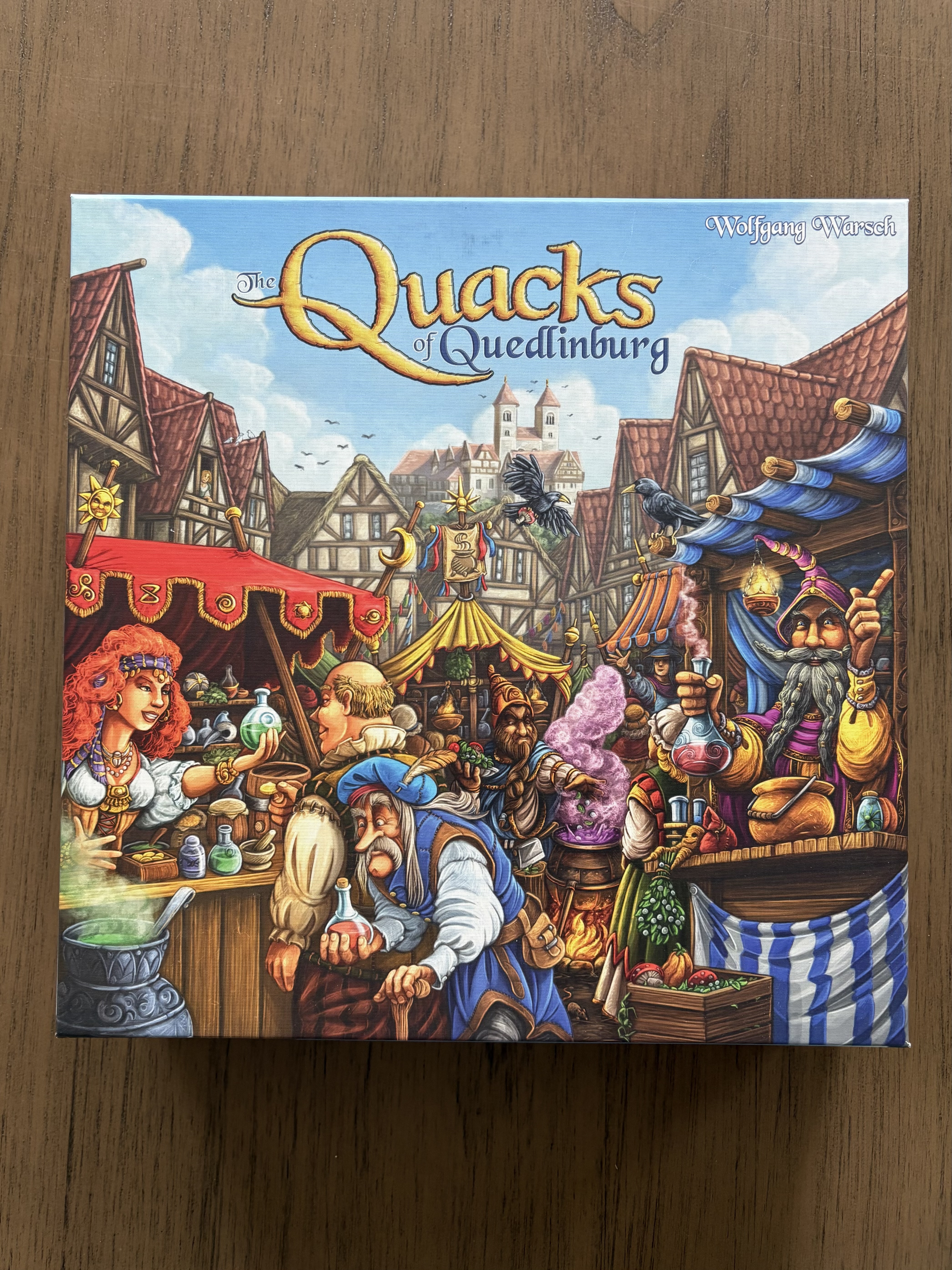 The Quacks of Quedlinburg, or now known as just Quacks, is a push-your-luck game where players simultaneously draw tokens from their bag, increasing the value of their potion which is then used to determine the number of points that player will score each round, as well as how many coins they will have to spend on new ingredients to add to their bag for the next round. During a round, players continue to pull tokens from their bag until they either choose to stop or their pot explodes.