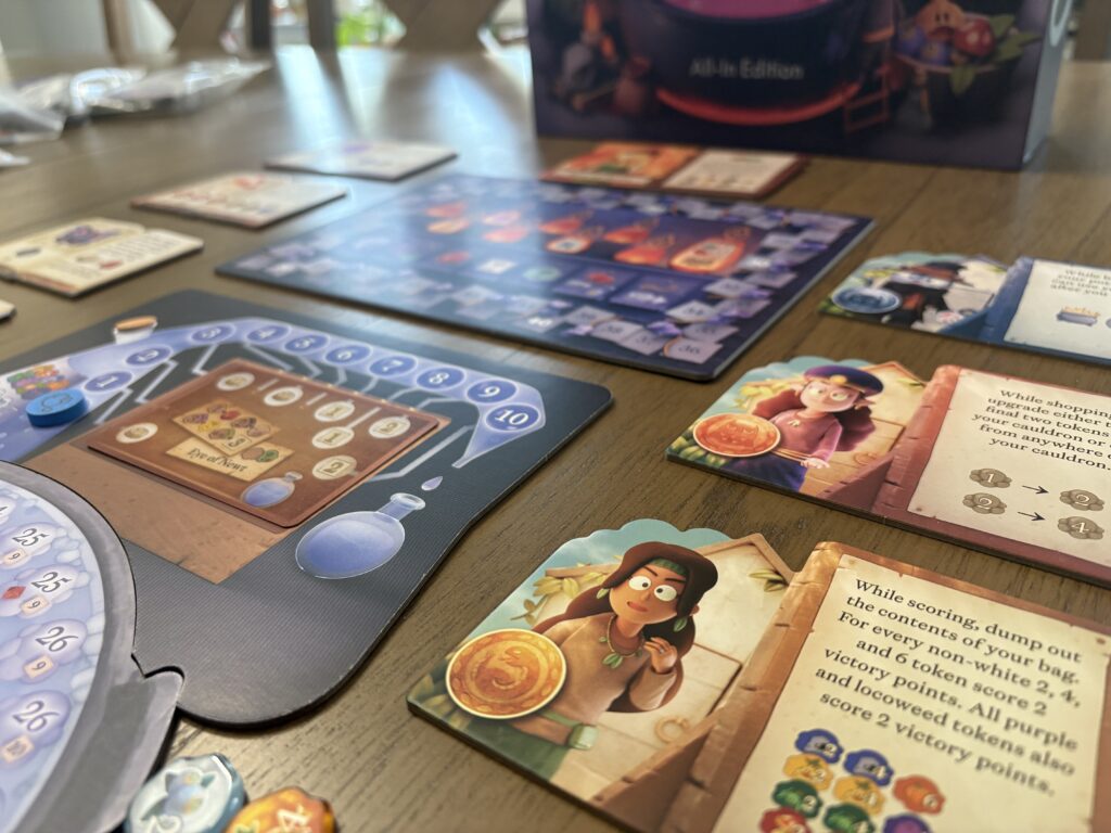 Now, moving on to what’s included in the All-In edition. The version includes the upgraded tiles and bags from the deluxe edition, as well as both expansions that were previously released: The Herb Witches and The Alchemists. As someone who had never played either of the expansions previously, I was very excited to jump into these.