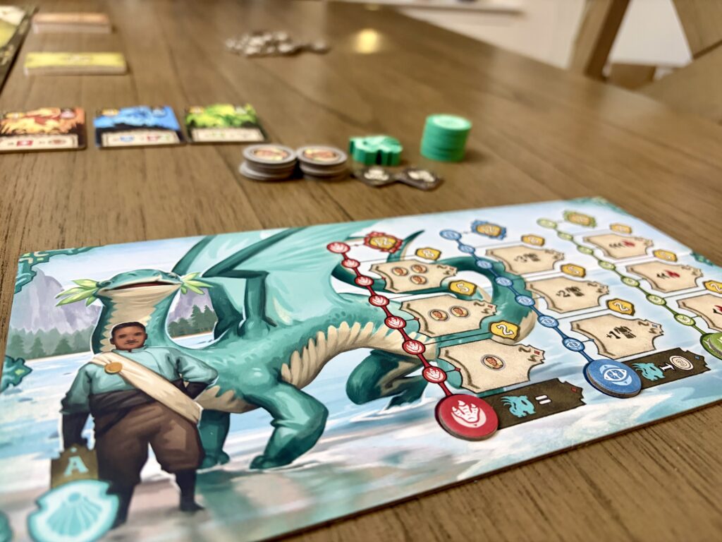 I found that this also creates a lot interesting tactical decisions without being bogged down by a lot of rules. The actual rules to the game are relatively simple, with the only exception being the mountain location, which is a bit more involved than the others. Players mostly collect cards, such as dragons, to score victory points. The heroes also provide some nice abilities, such as benefits for performing certain actions, and end-game scoring conditions, such as points for having the most of certain type of card or resource. You can also create so some satisfying combos with the heroes. For example, in one game, I had a hero that gave me rewards for every two green-colored dragons I had at the end of each round, so I focused on collecting a lot of green dragons to score high.