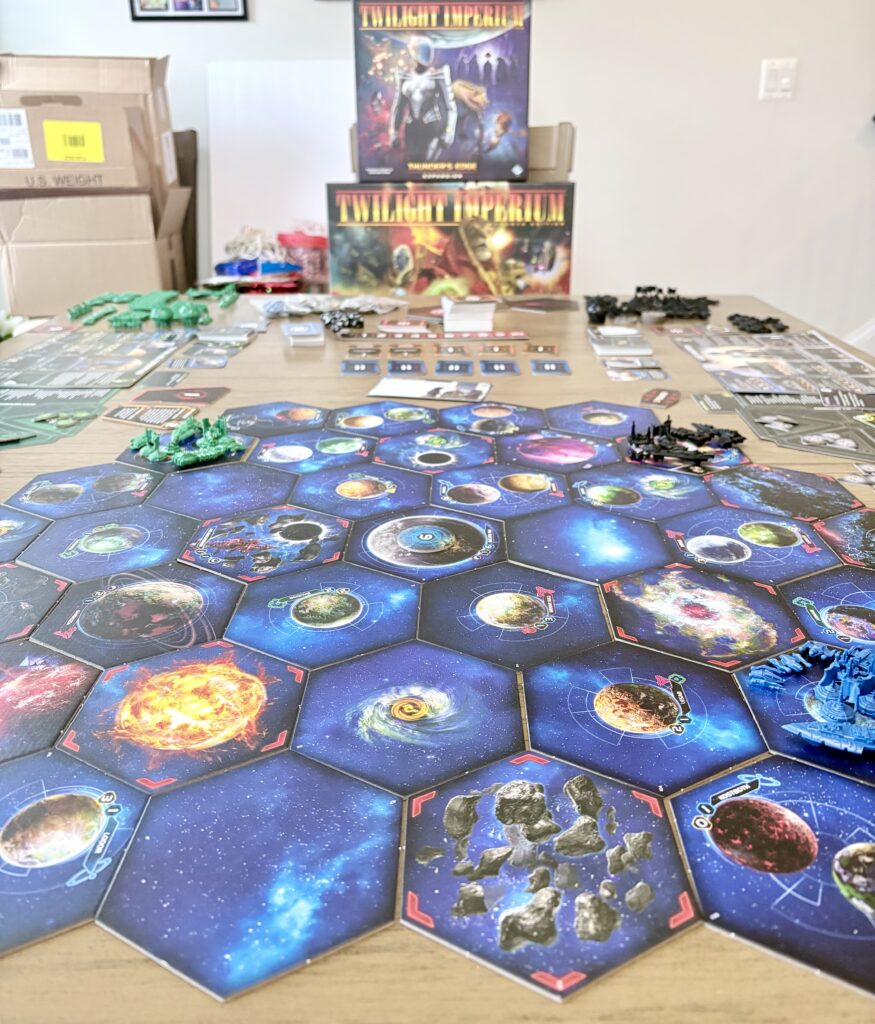 Twilight Imperium: Fourth Edition – Thunder’s Edge is the second expansion for Twilight Imperium: Fourth Edition (TI4). I recently returned to TI4 earlier this year, after six years on the shelf, and given our group’s trepidation going in, we enjoyed the experience far more than we initially expected. With that experience, I was eager to jump into the new expansion, if still a little nervous, given our group was still relatively new to TI4.
