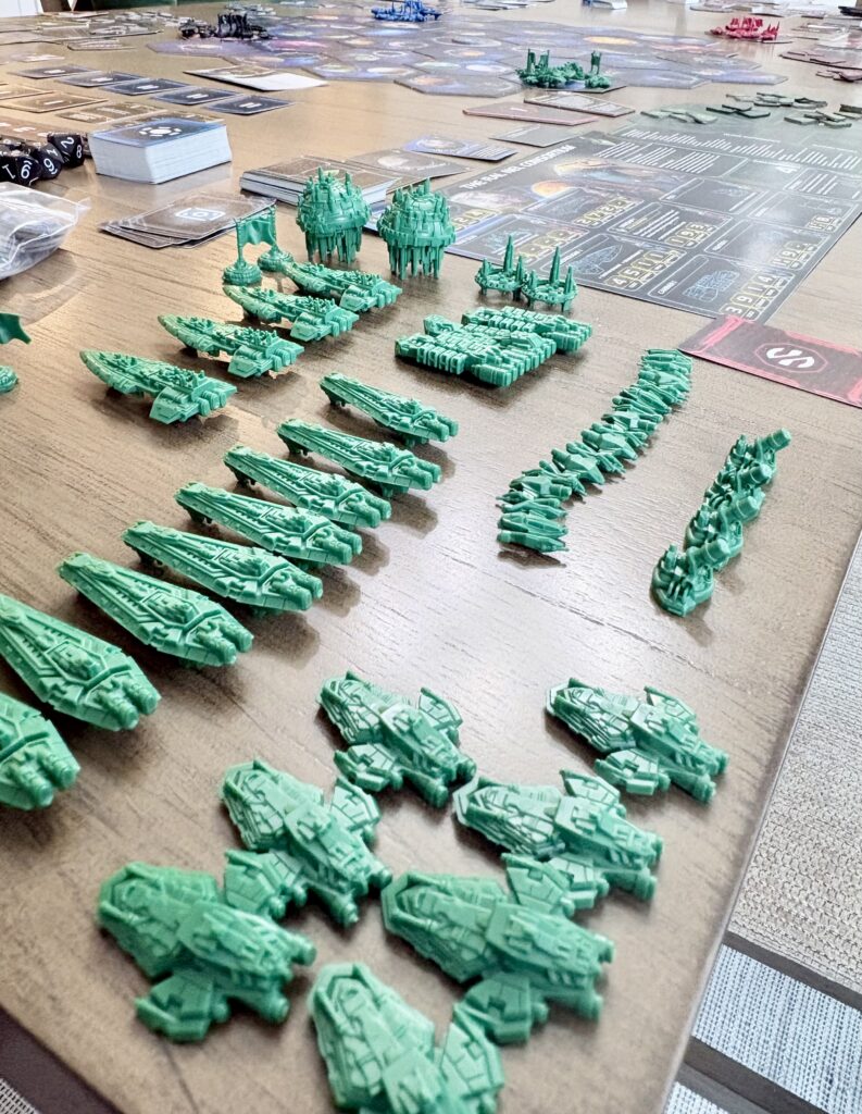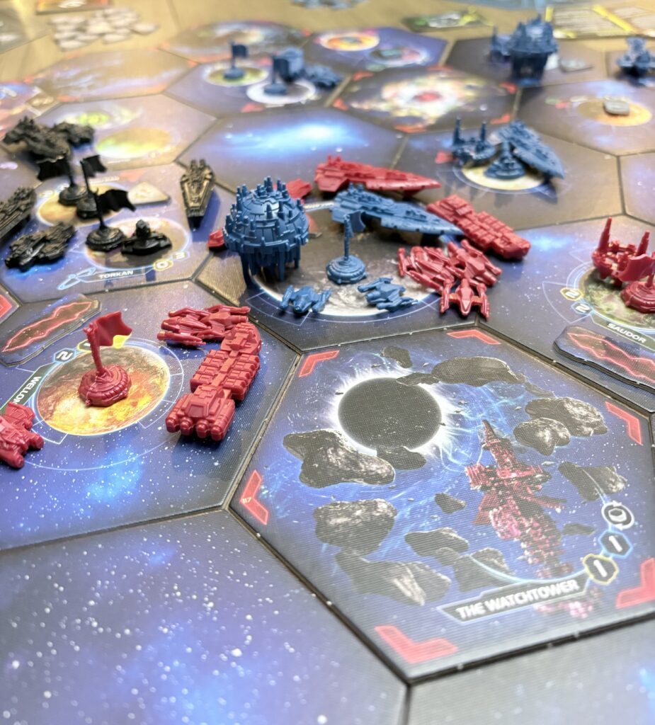 There are even more new features that the expansion adds, like the Entropic Scar (a new type of anomaly), dual planets, a coexisting mechanism, and an alliance game variant, but arguably one of the largest additions is the introduction of the Twilight’s Fall game mode. In this variant, players take on the role of a Mahact King faction that can be modified throughout the game. Though a new mechanism called splicing, players can unlock additional abilities and unit upgrades. I have not personally tried this game mode yet, but overall it feels geared towards more experienced TI4 players who want to create highly customized factions. This game mode feels quite unique and interesting, but I might need a few more games of TI4 under my belt before I attempt this.